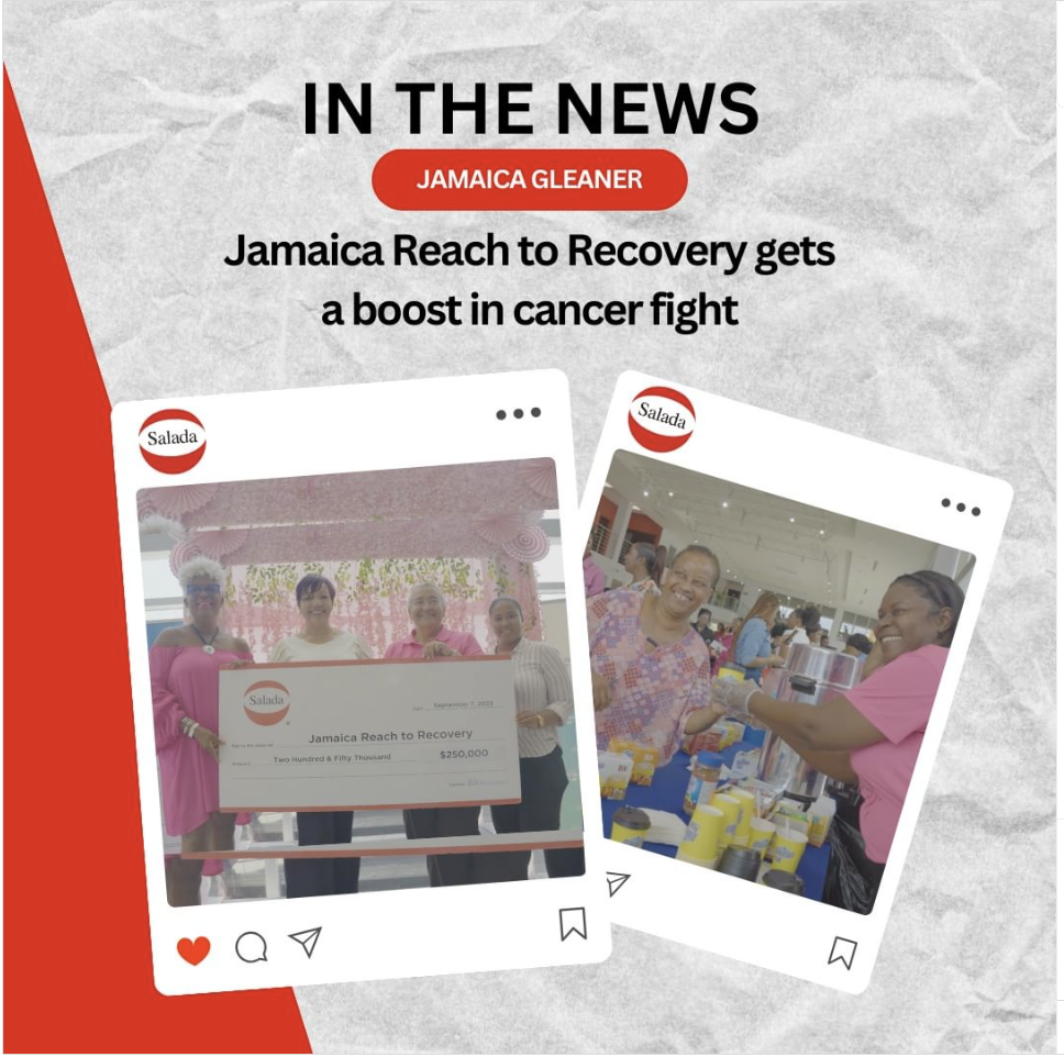 Salada Foods continues its ongoing support to the Jamaica Reach to Recovery in its efforts to fight Breast Cancer in Jamaica. Salada donated $250,000 to the cause in addition to support of their annual Pink Run, for an overall total donation of $500,000.